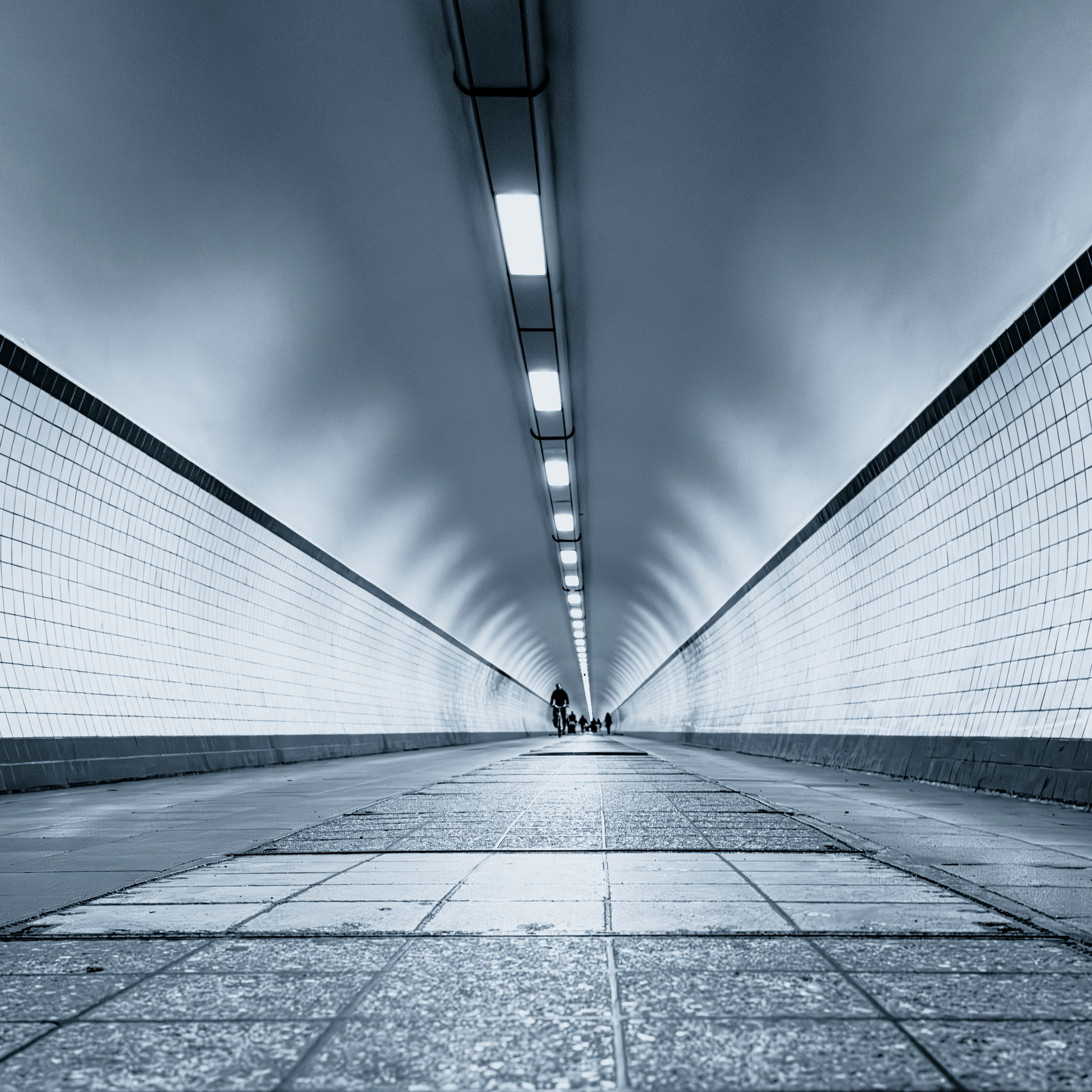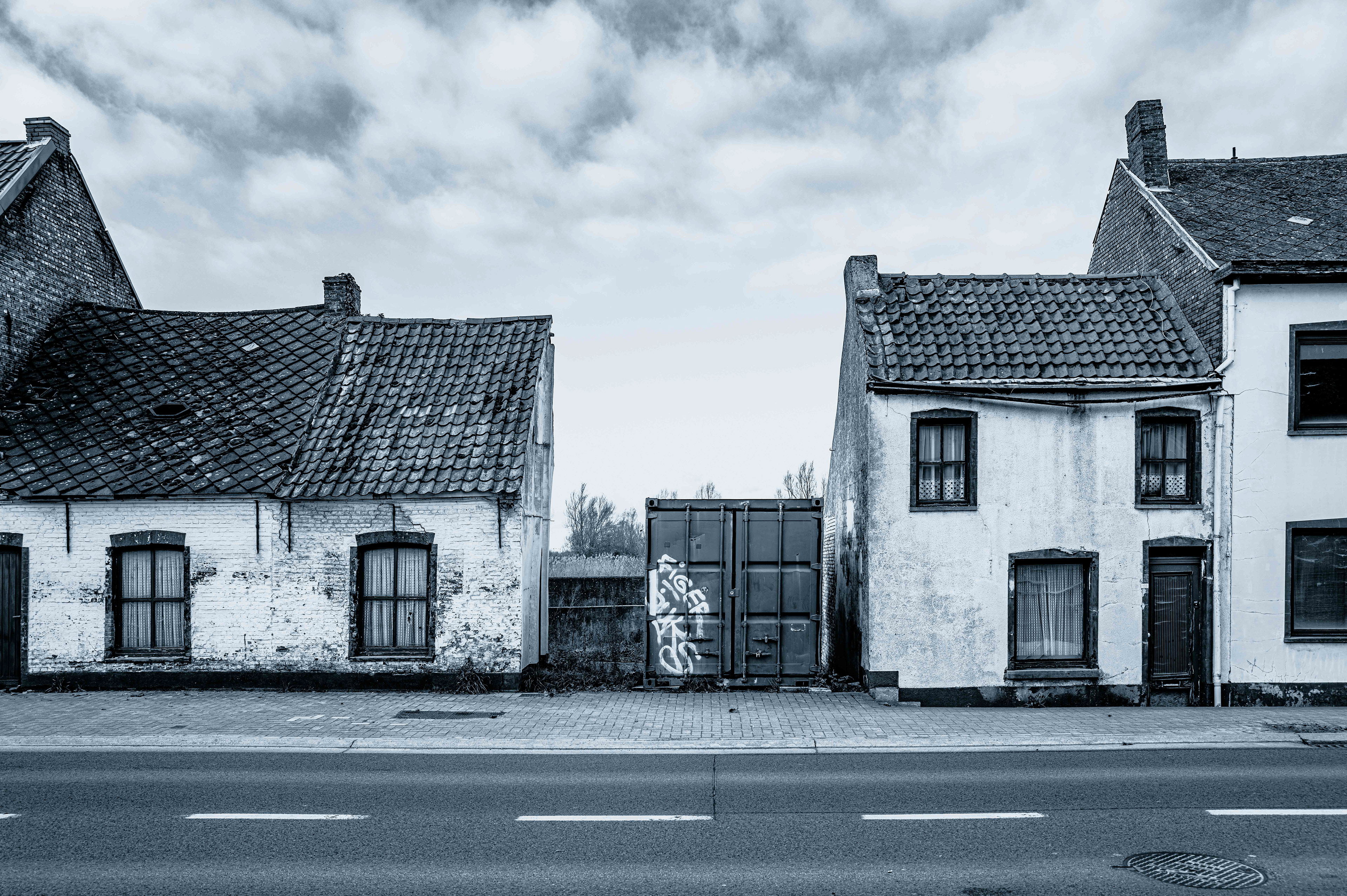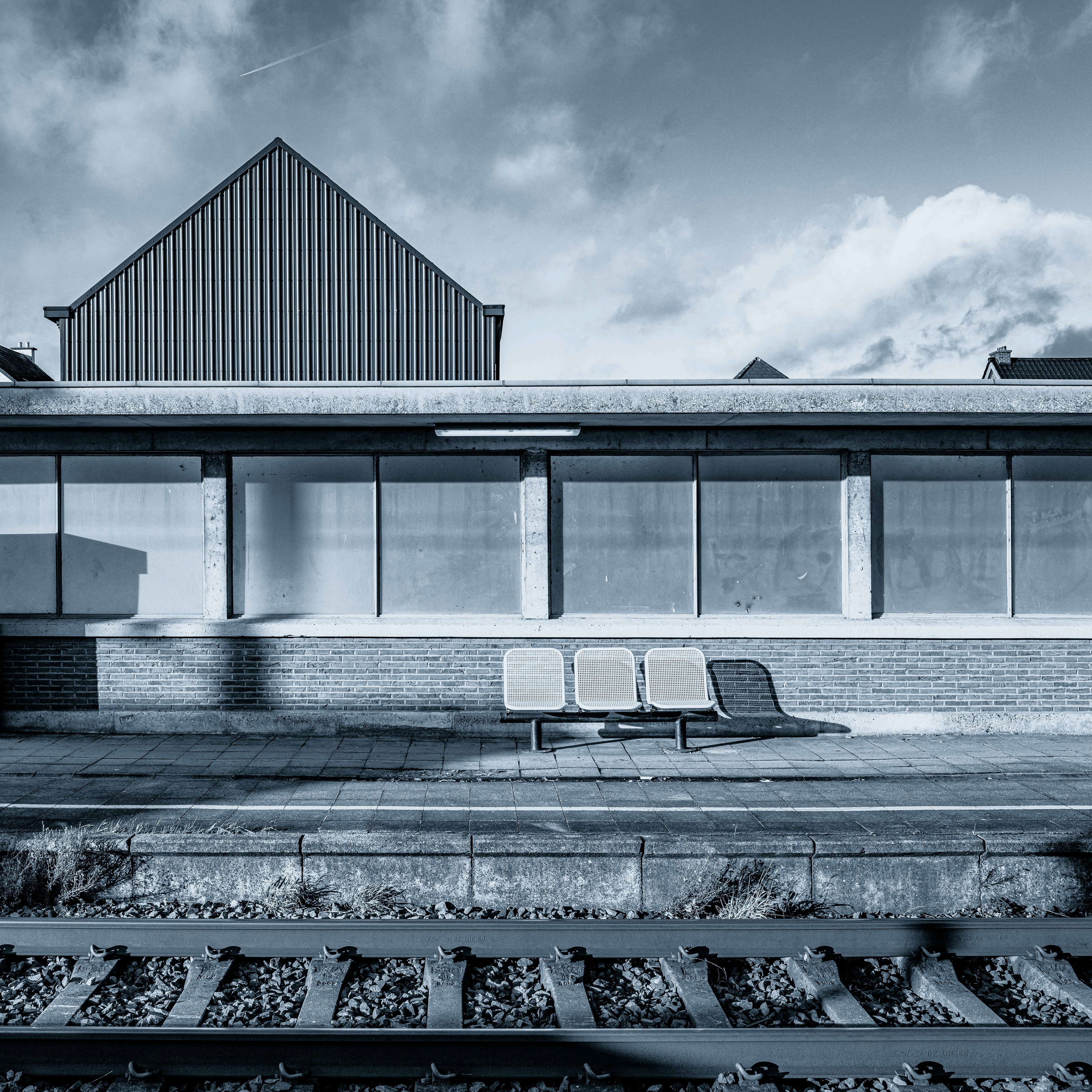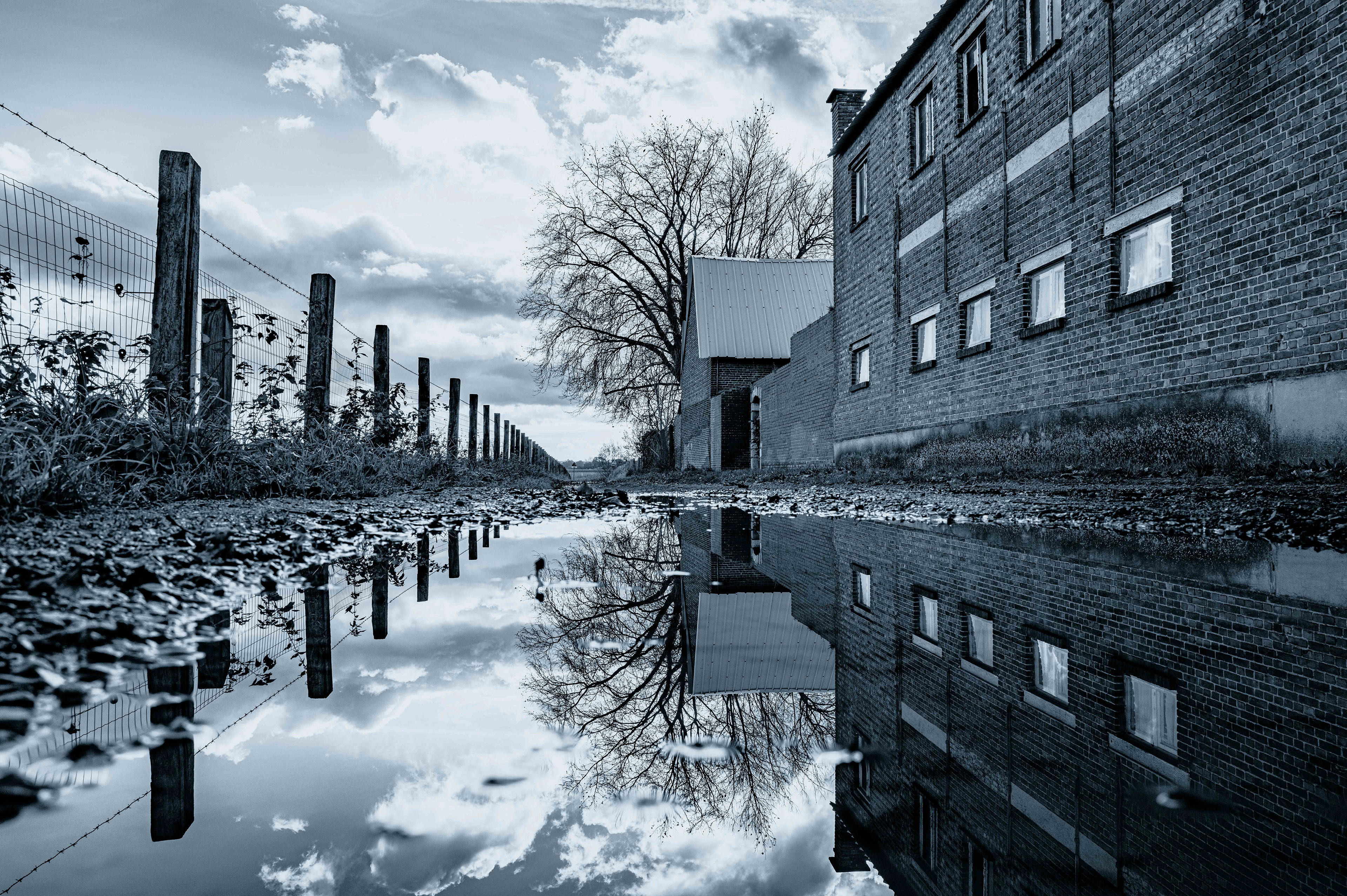 Zwart/wit met een vleugje blauw. Reflectie. Compositie. Strak.